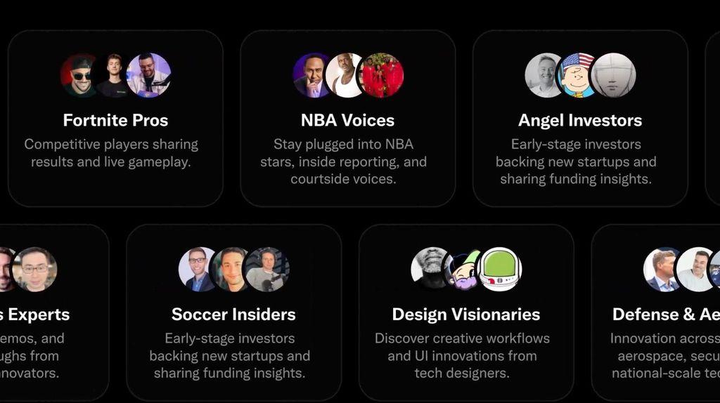 La funzione riprende il modello di Bluesky con liste curate di creator per ogni nicchia.