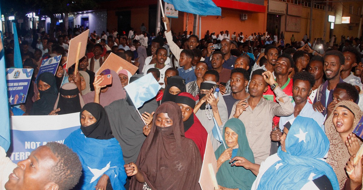 „Hundreds of demonstrators gathered in Somalia's capital to protest Israel's recognition of the self-declared Republic of Somaliland, waving Somali flags and chanting patriotic songs in a show of national unity.“