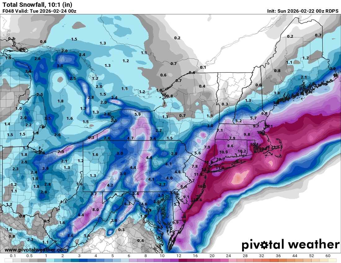Honestly, I'm looking at mesoscale models I never really look at, trying to find one that doesn't show at least a foot of snow along I-95 and I can't find one. Just not seeing any sign right now of a huge bust.