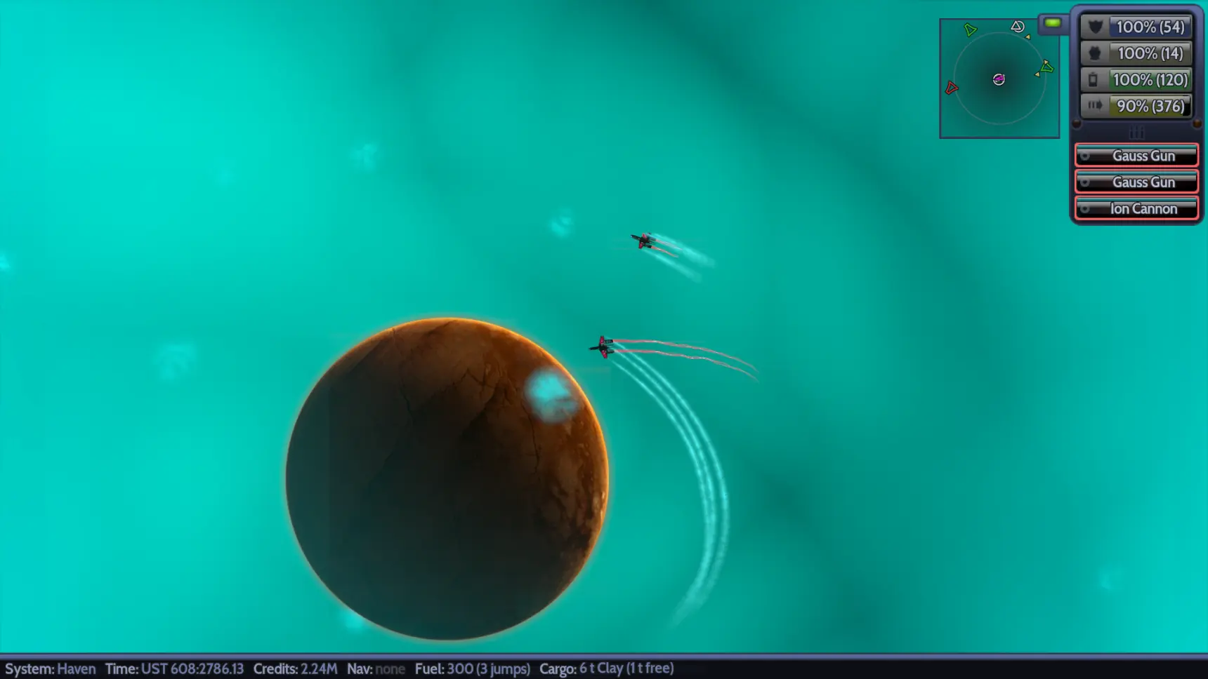 🕶️ A 2D view of the game (v.0.13, taken from the website, titled “Secrets lurk in many places”) showing its interface (a mini map at the top right with a small window displaying key stats and buttons, and at the bottom a horizontal bar with other important stats) and two ships orbiting a planet. 📚️ Naev is a libre, multi-platform, 2D, single-player, real-time space combat and trading game, notably inspired by Escape Velocity, featuring fast-paced combat, numerous ships, a wide variety of equipment, and vast galaxies to explore, with content (scenarios, equipment, ships, and galaxy) expanding with each release. Other strengths include the freedom of action and the special attention given to the accuracy and realism of the simulation.