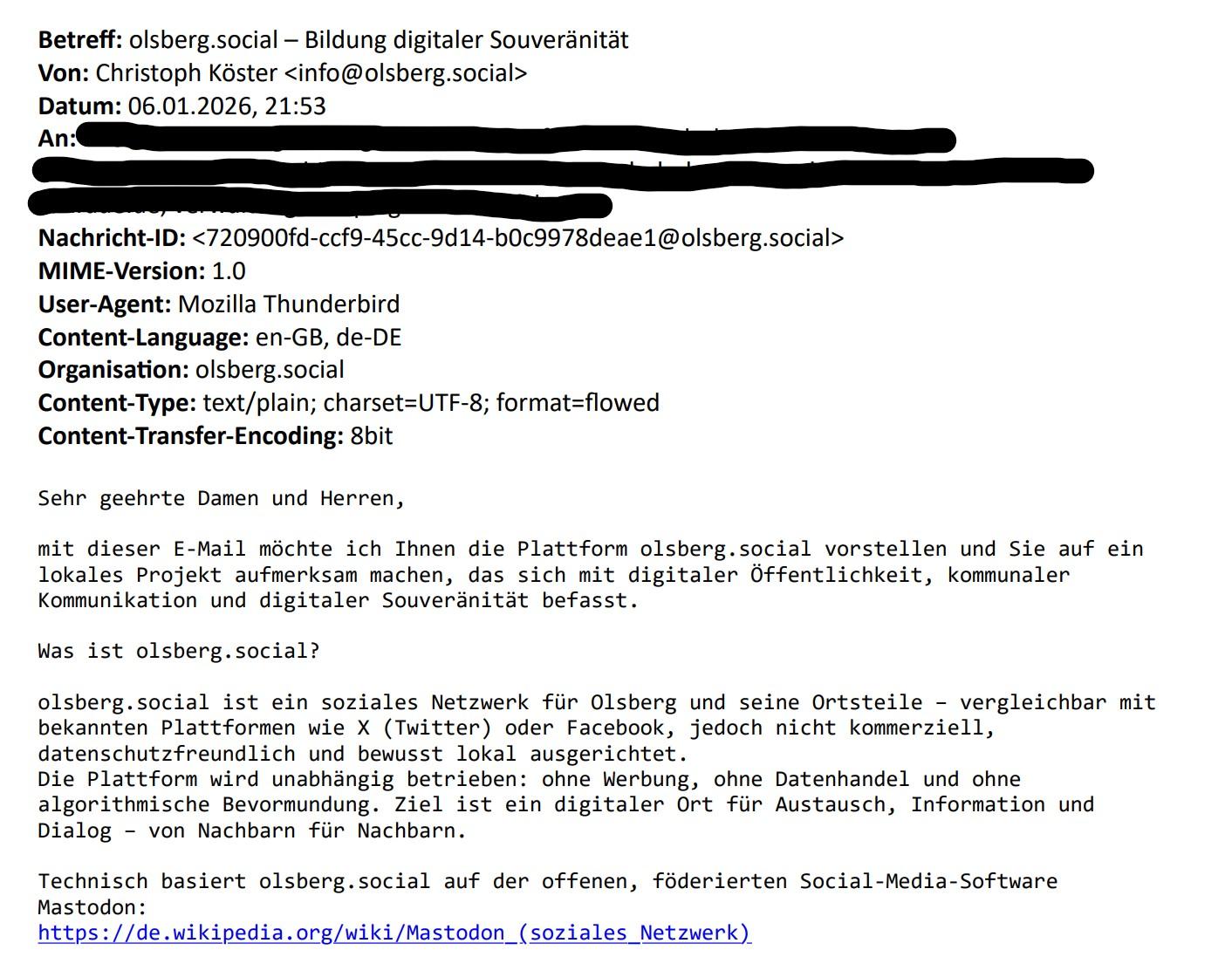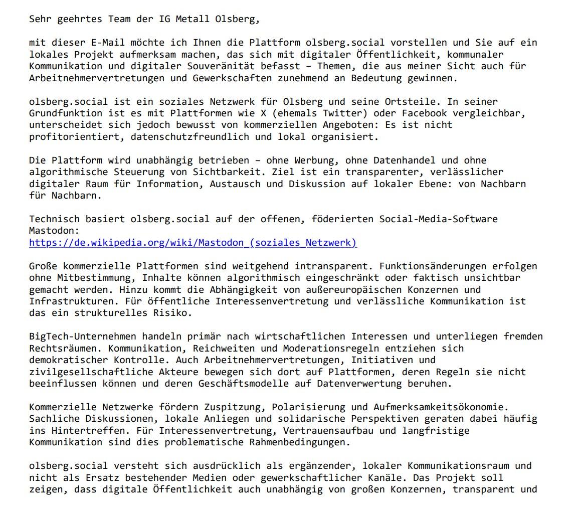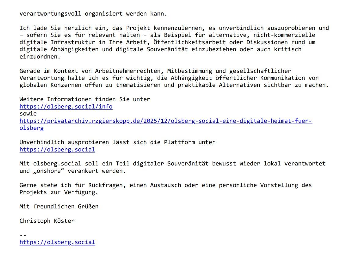 Für dieses Jahr habe ich mir zum Ziel gesetzt, meiner Heimatstadt #Olsberg das #Fediverse und den damit verbundenen Gedanken des freien Internet näher zu bringen.