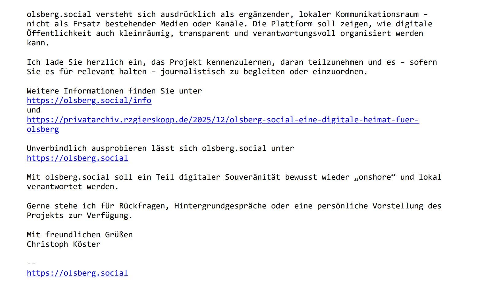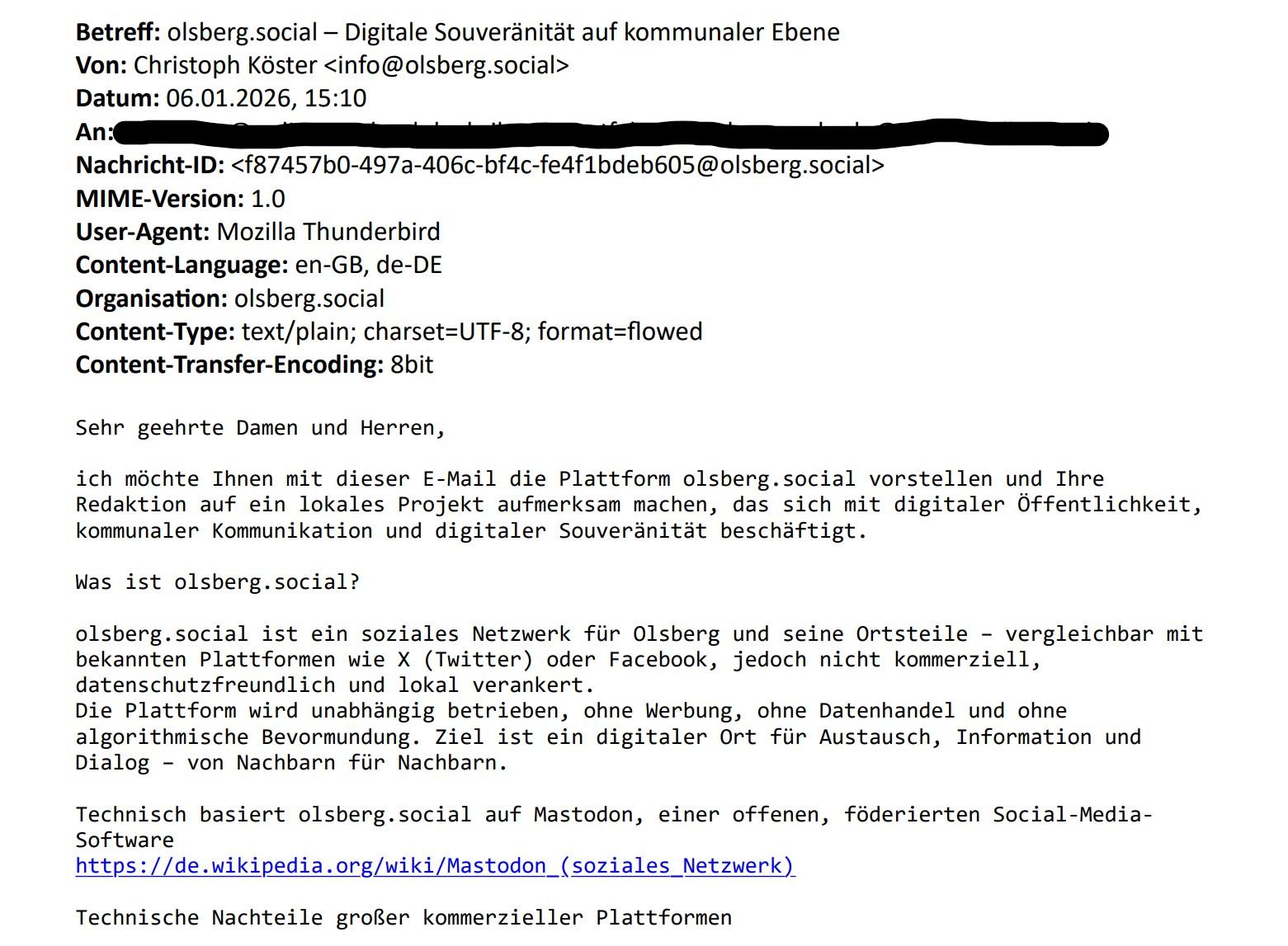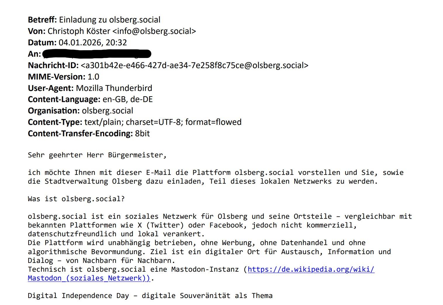 Für dieses Jahr habe ich mir zum Ziel gesetzt, meiner Heimatstadt #Olsberg das #Fediverse und den damit verbundenen Gedanken des freien Internet näher zu bringen.