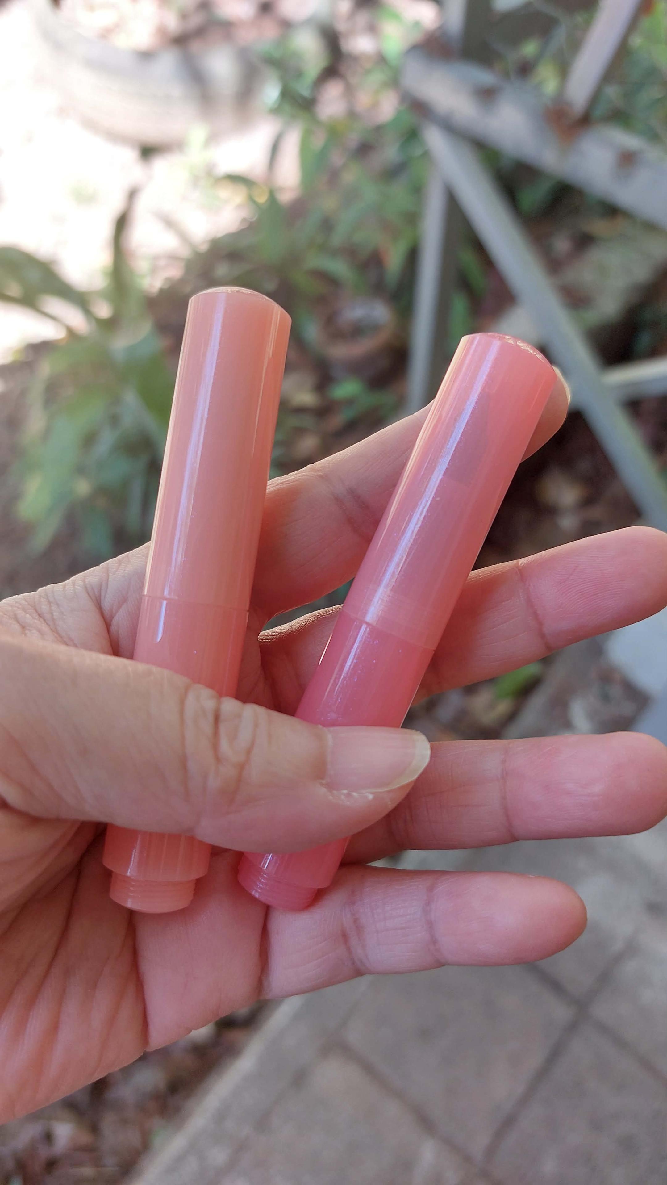 Even in the shade, the Majohn Wancai Mini fountain pen in Peachy Pink (left) and Strawberry Pink (right) are very similar. The strawberry is just a tad rosier and more translucent. I wish I could capture it, but both have the very fine blue and silver shimmers in the acrylic, so very pretty! Am not disappointed at all. Happy with my yellow and purple ones, too. But wondering about the baby blue one now.