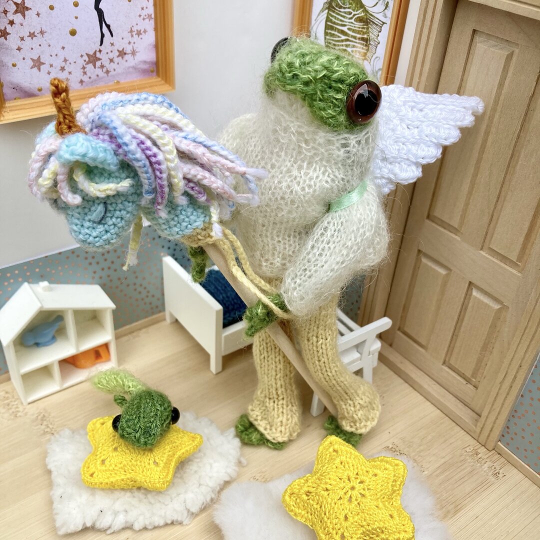 #imadethisfrog #knitting #crochet #cute #kawaii #knittedfrog #frogdoll #unicorn