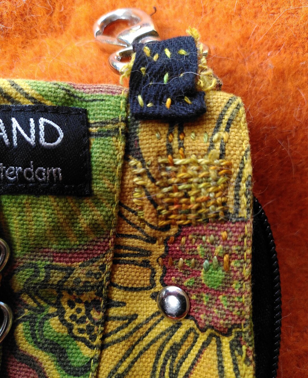 Visible mending on a little bag. 馃