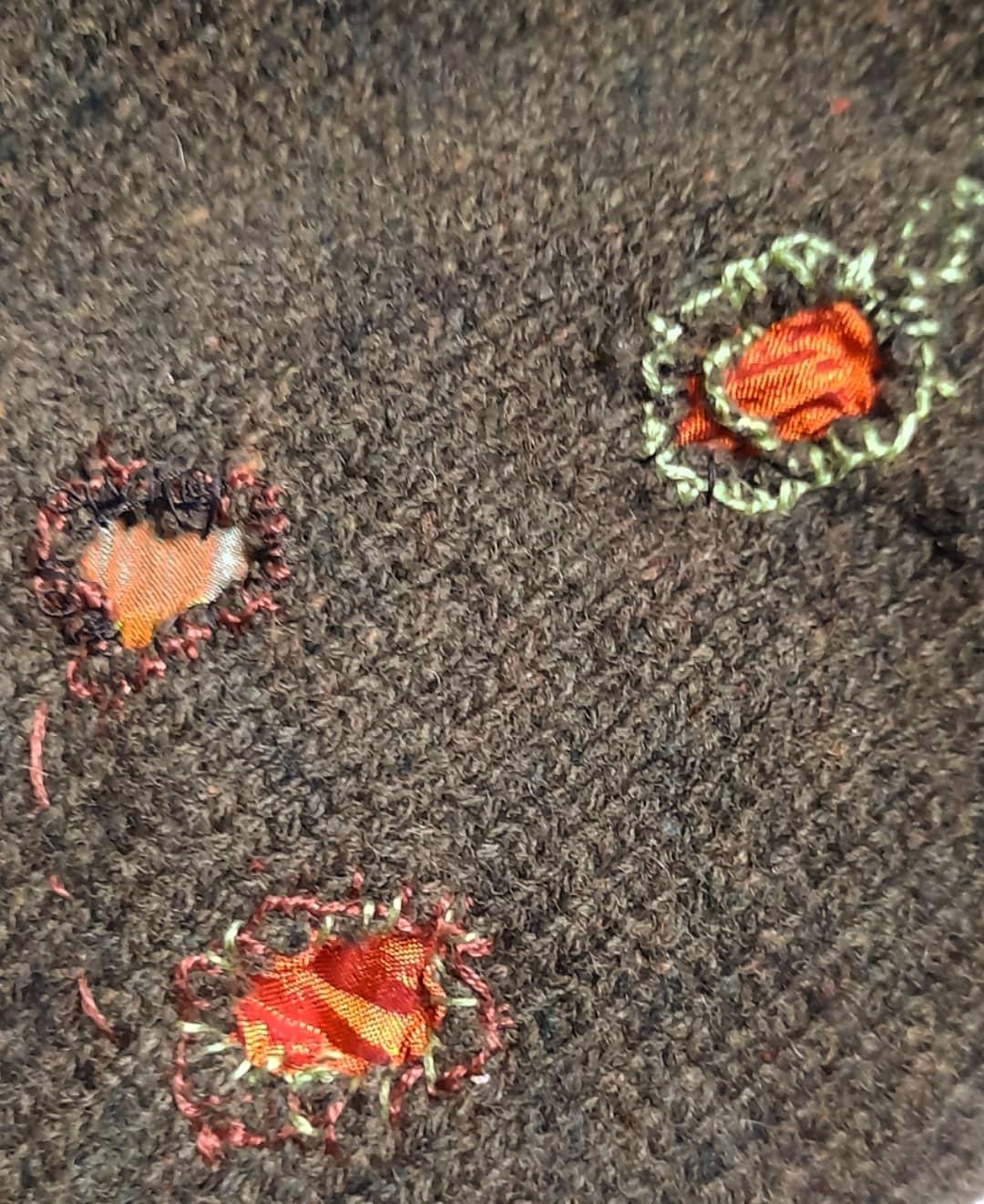 @LateNite I once had my favourite sweater eaten by moths. After cleaning, I closed the holes by #VisibleMending which is easier because everybody can do it without knowing techniques. I used coloured silk patches and "wild" #embroidery ... and even embroidered some #moths flying between the holes. π