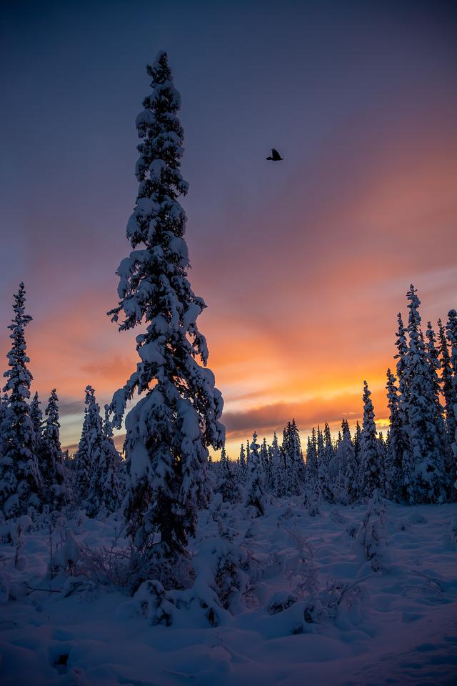 Winter sunrise in the boreal forest often lasts longer than people expect.