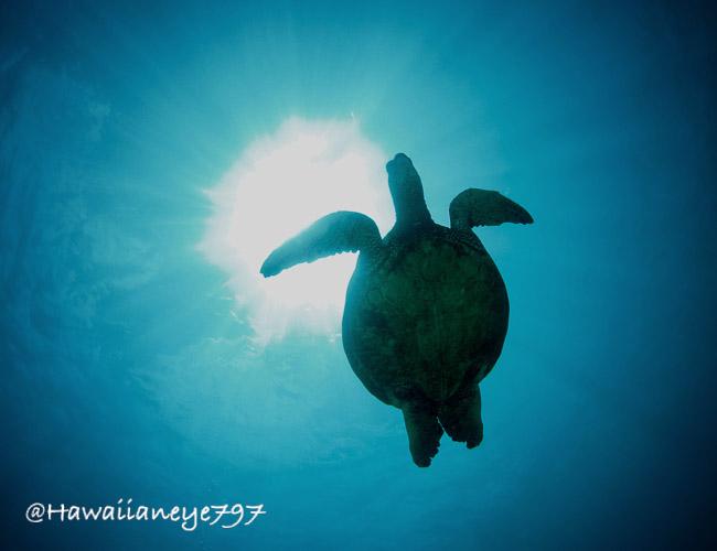 Green Sea Turtle, aka Honu, silhouetted over an #Oahu #Hawaii #reef . Your #sealife #photooftheday