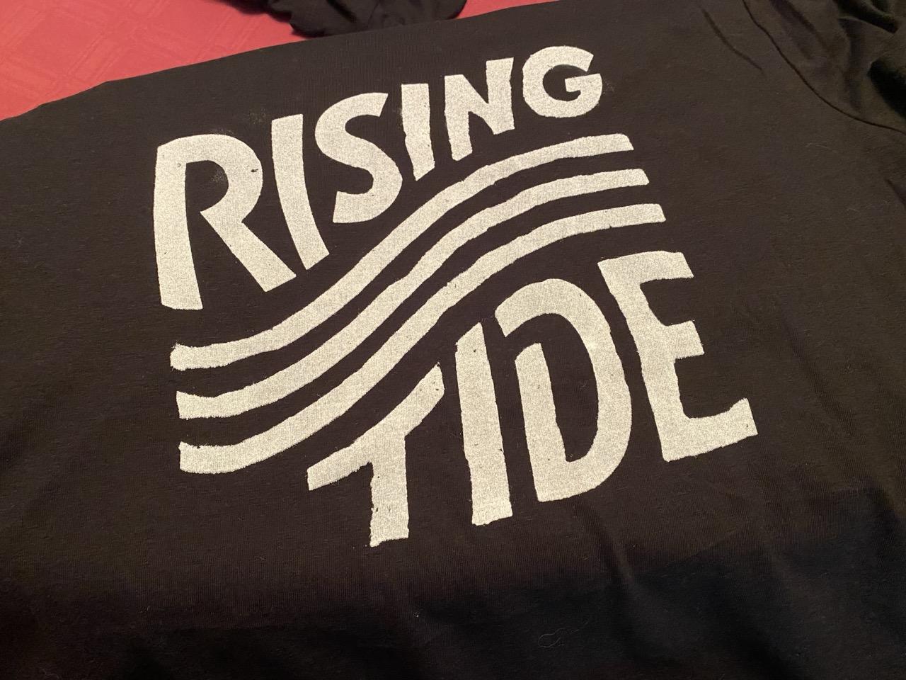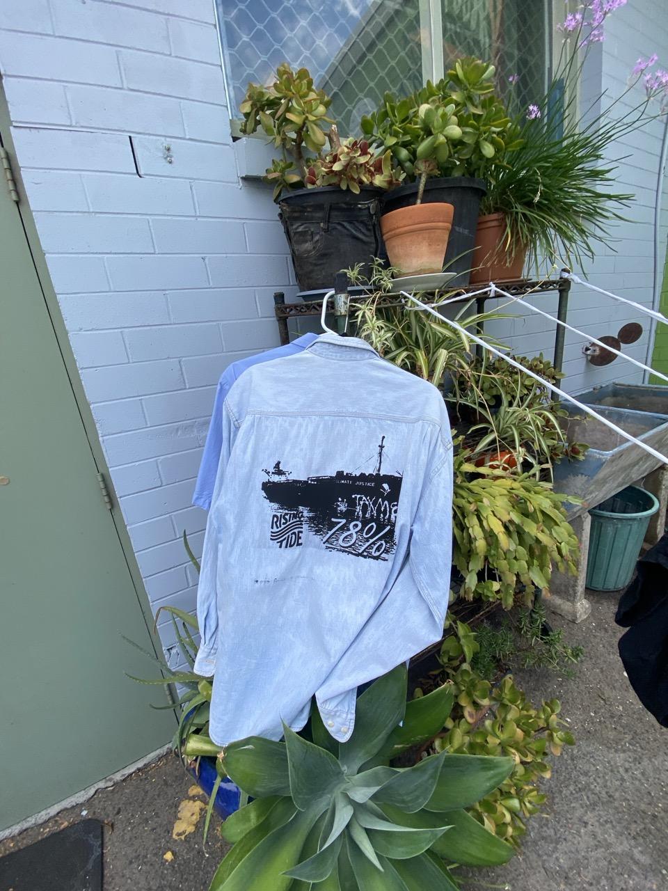 Spent Sunday doing craftivism for Rising Tide at Upcycle, mostly helping screen print on clothing (secondhand or donated). #RisingTide #craftivism