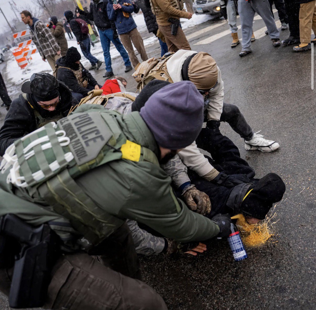 federal agent pepper-sprayed a man in the face at close range while he was being pinned to the ground by other agents