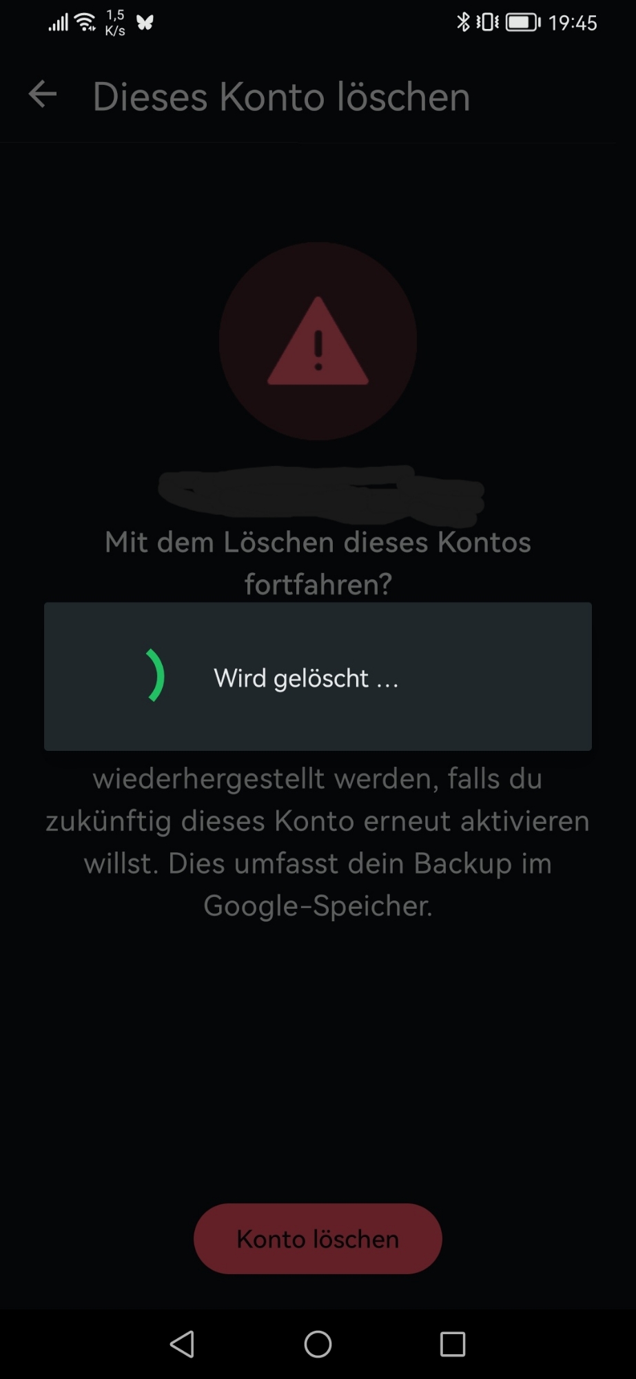 Screenshot des aktiven Löschvorgangs vom WhatsApp-Konto.