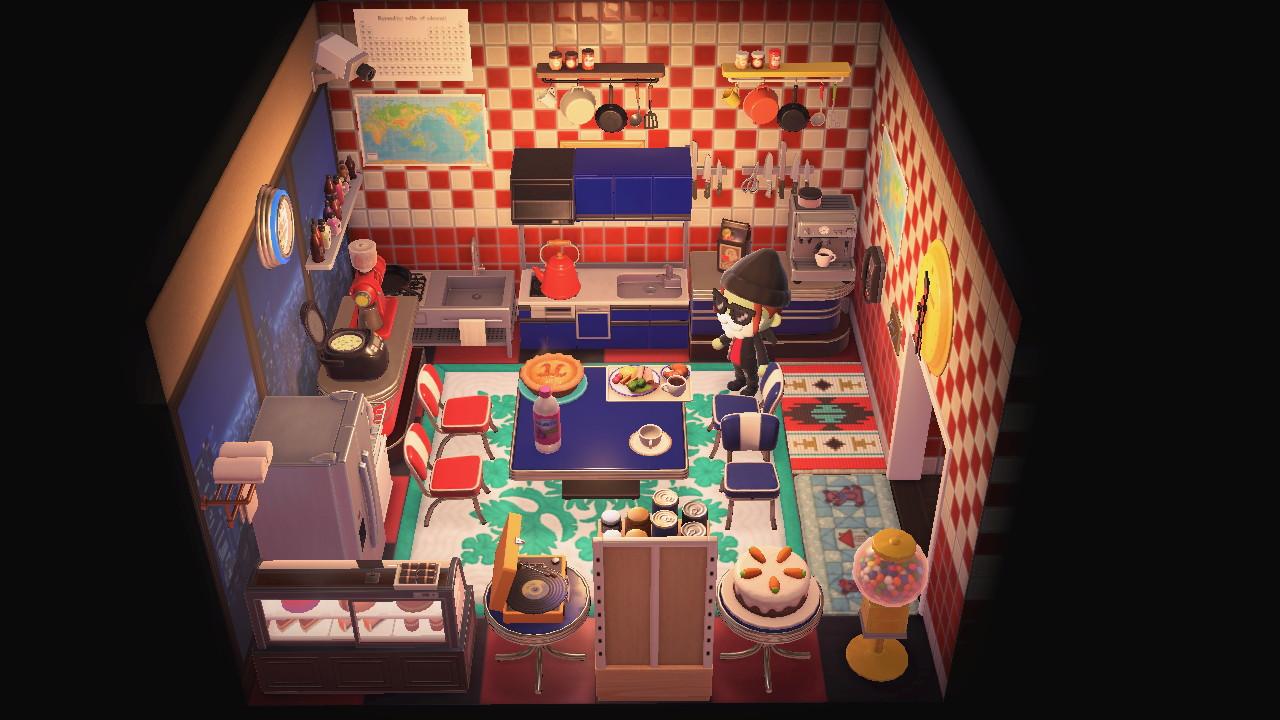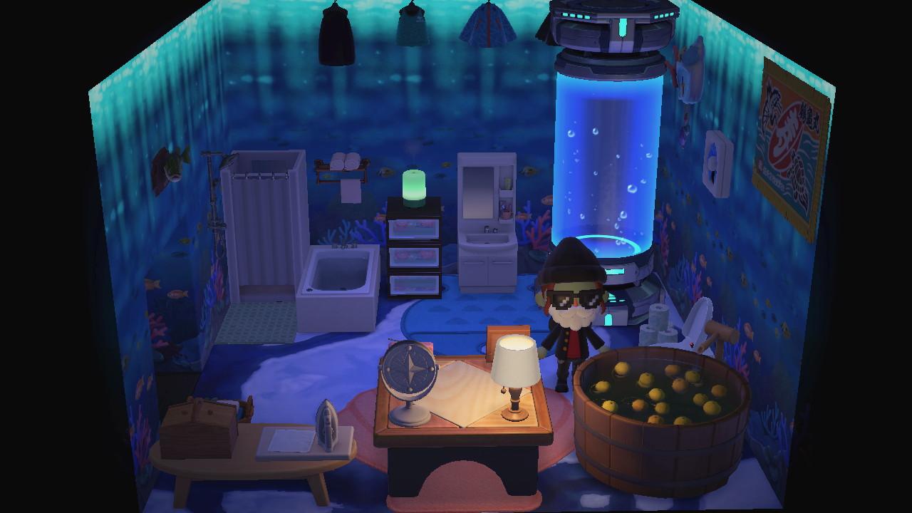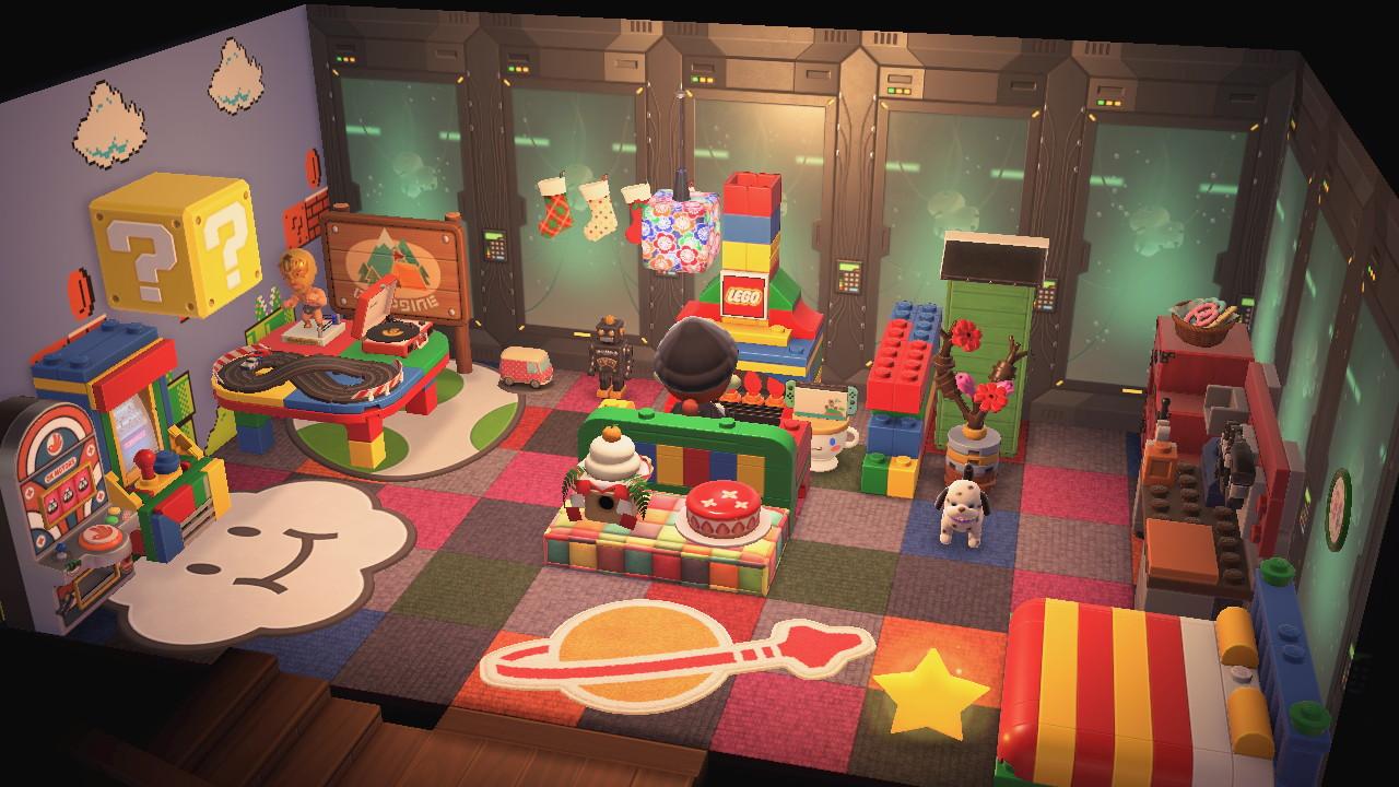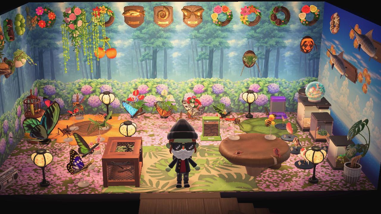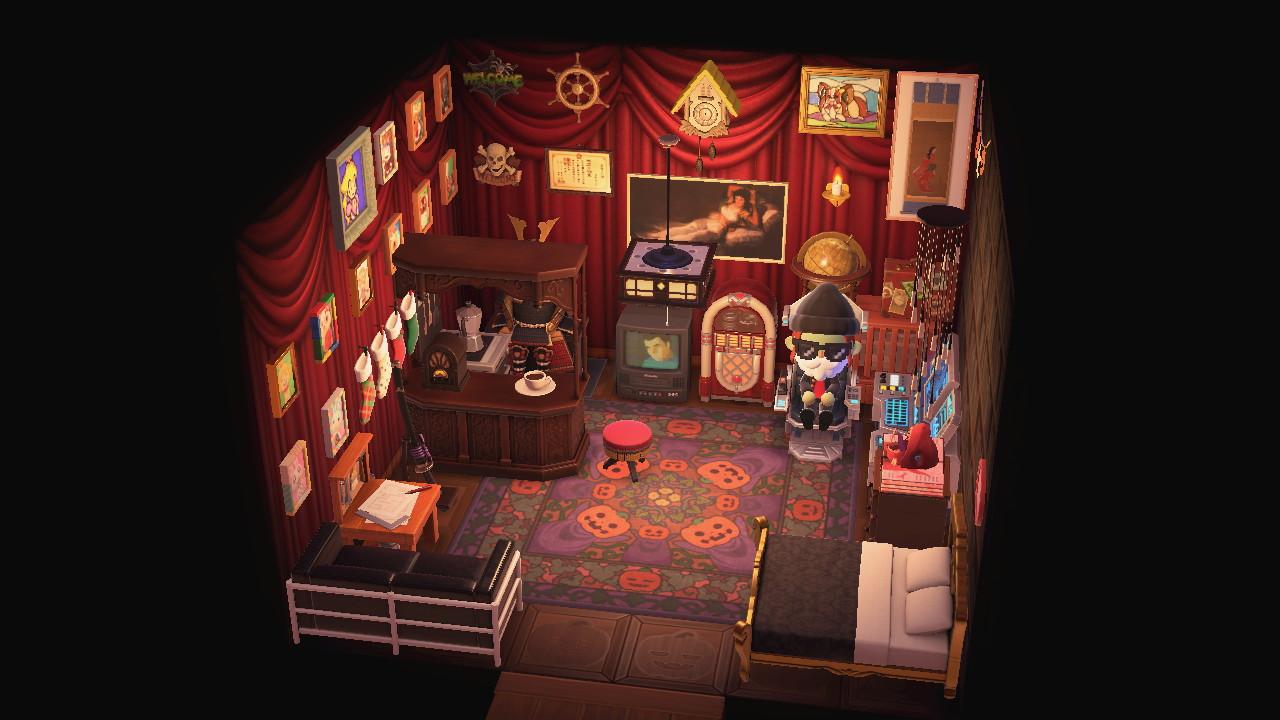 Little gallery of my ACNH house. The front room was great, but villagers constantly dropping by makes it almost useless, so I mostly work in the back office or kitchen.