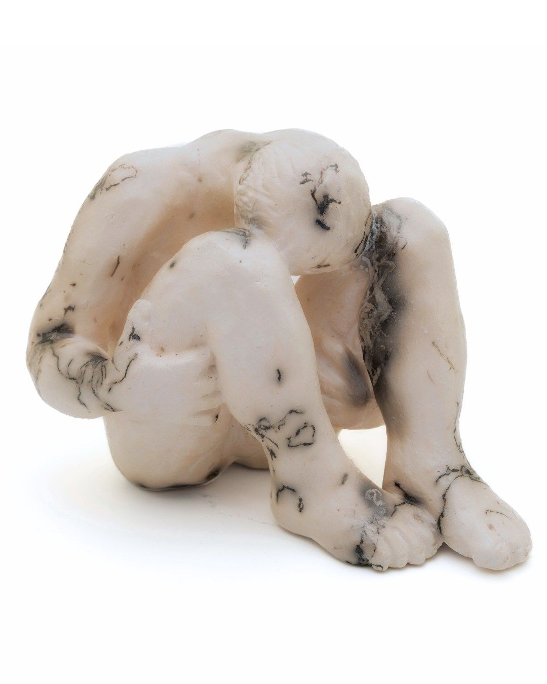 This sculpture is a curled up human figure, raku fired with horse hair. Symbolizing #overwhelm #fear #sorrow #hurt #stress #distress
