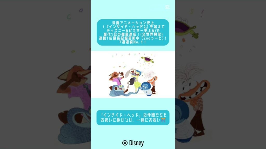 洋画アニメーション史上 (『インサイド・ヘッド2』を超えて ディズニー&ピクサー史上&)で 歴代1位の偉業達成!(全世界興収) 連続1位最長記録更新中(Zooっーと)! 7週連続No. 1! https://drama.io/851673/ #Capcut #movie #TikTok #映画 #映画興行収入ランキング