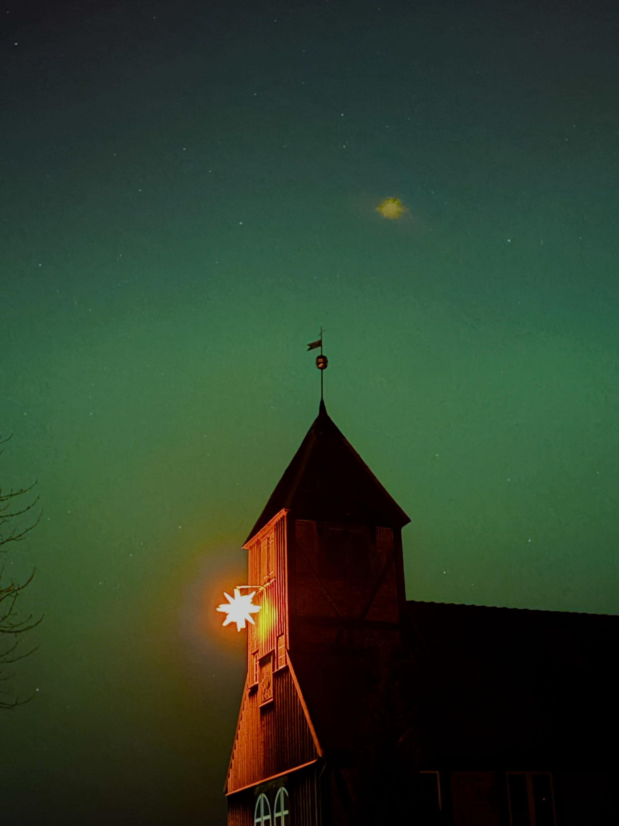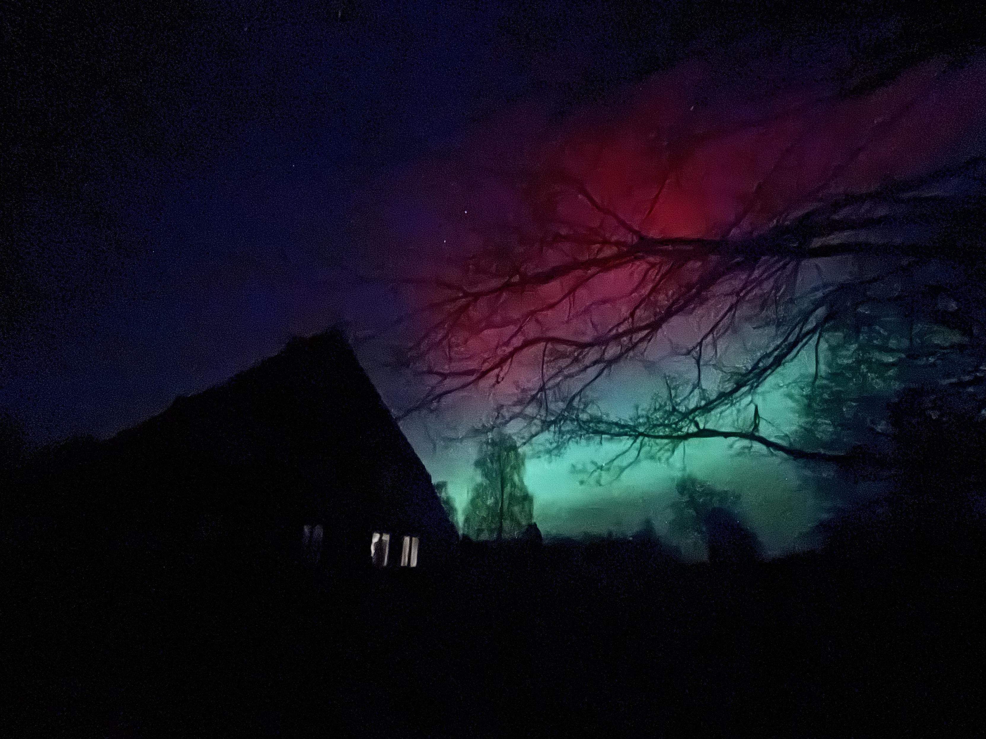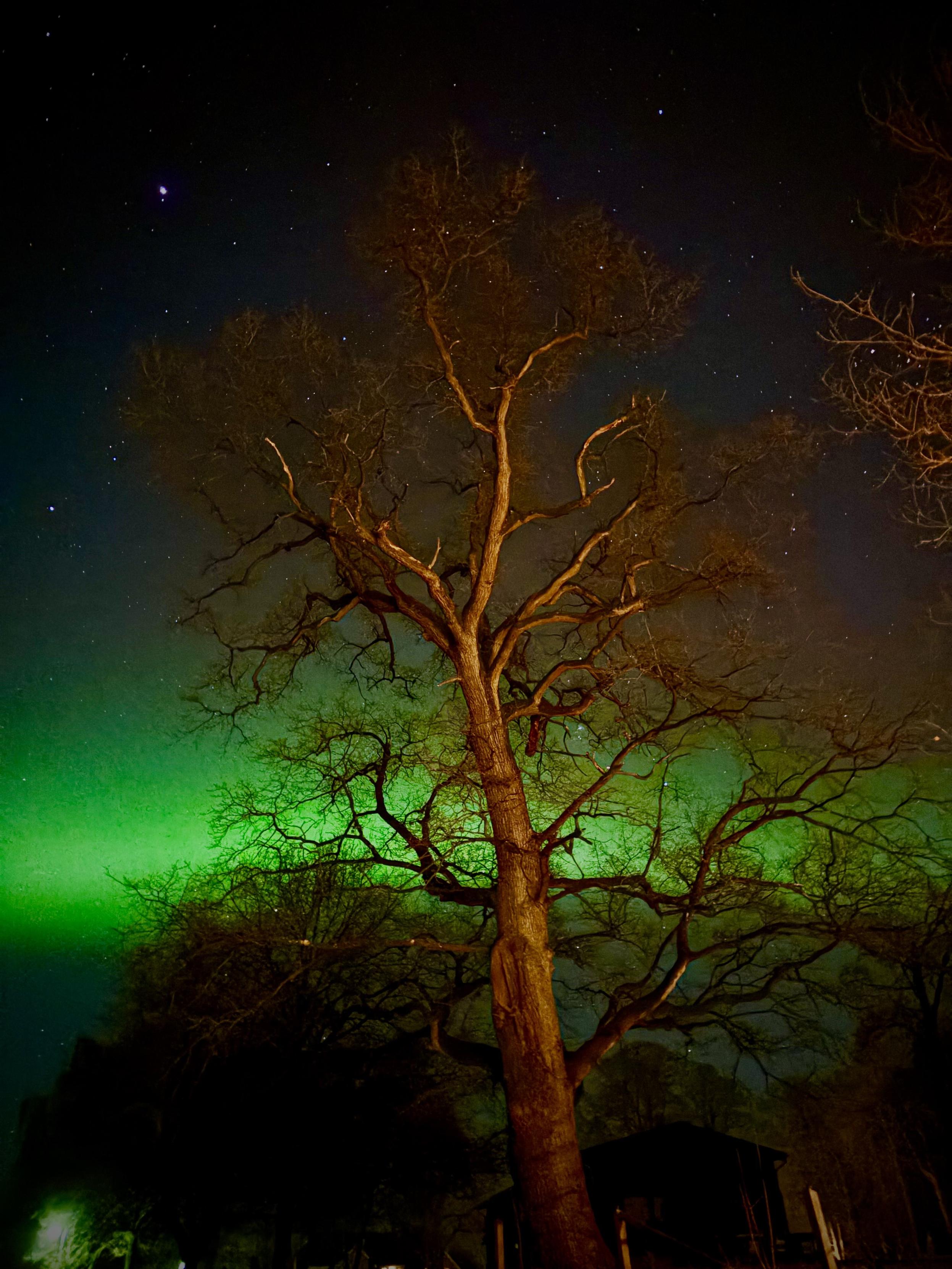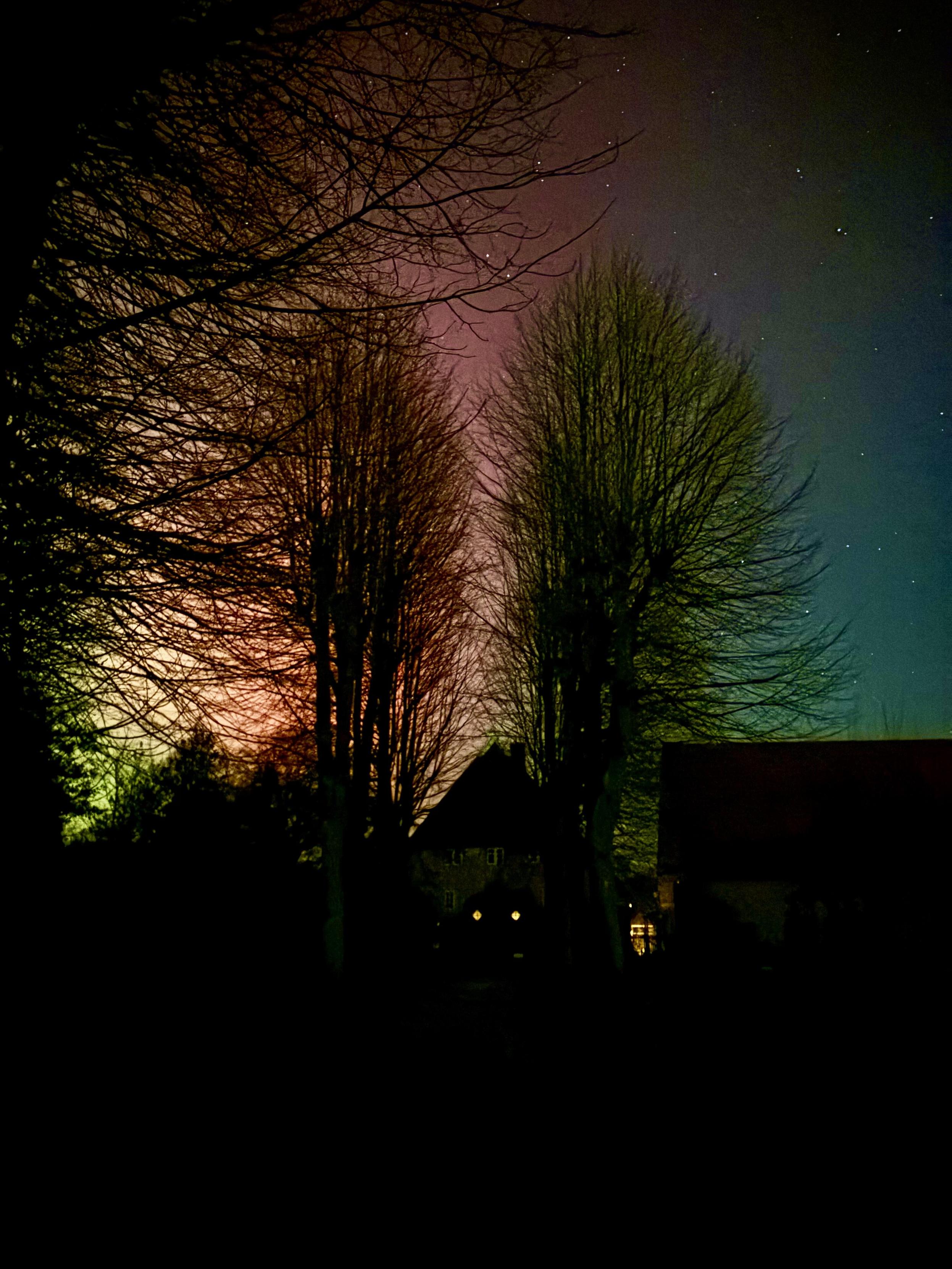 Als Montag die Nordlichter zu sehen waren, habe ich den ganzen Foto-Rucksack eingepackt. Mit dabei war auch das 4mm Fischauge, das mit >180° Bildwinkel den kompletten Himmel und Horizont abdeckt, wenn es senkrecht nach oben gerichtet wird.