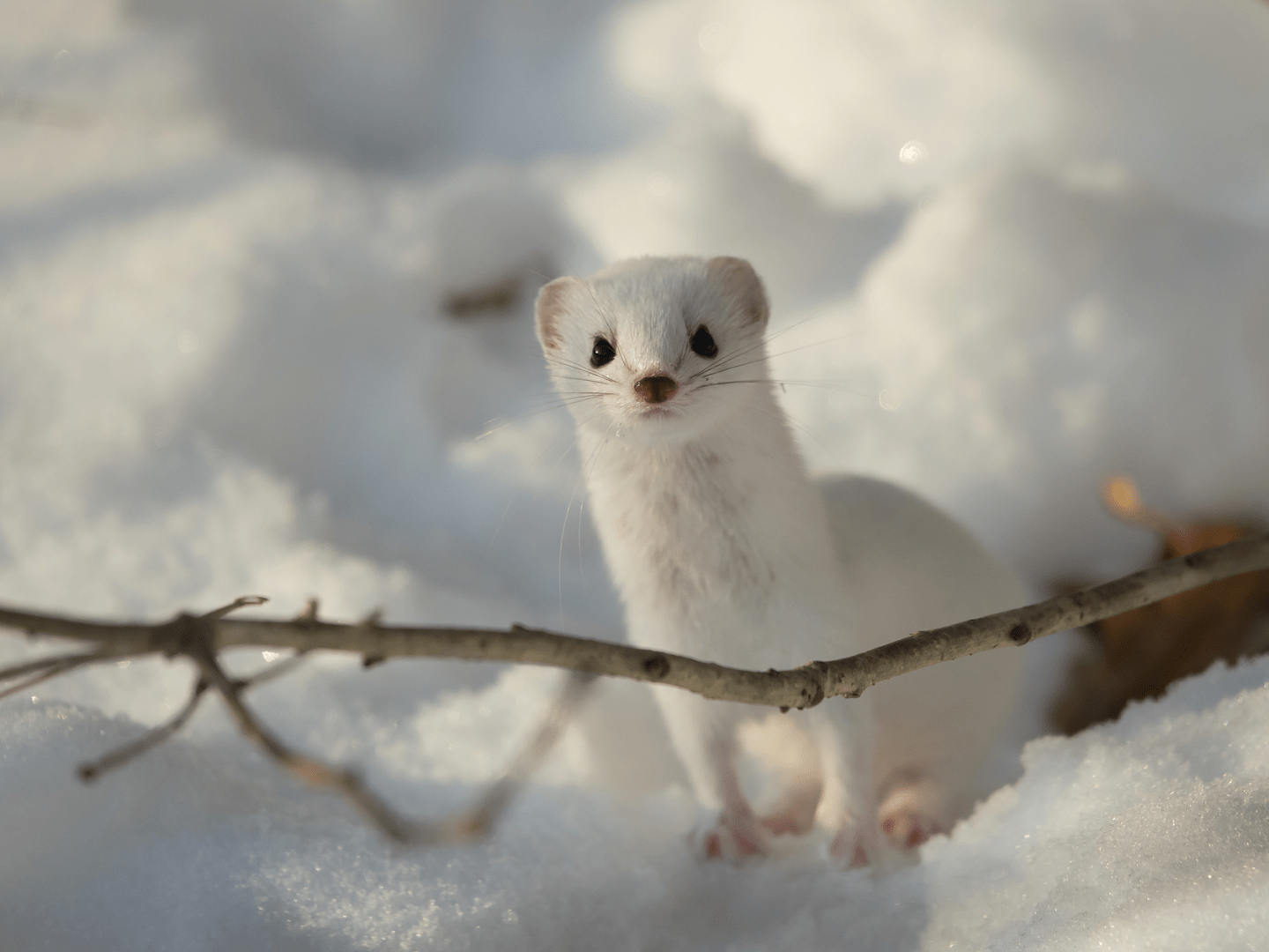Lumikko uteliaana – Curious least weasel