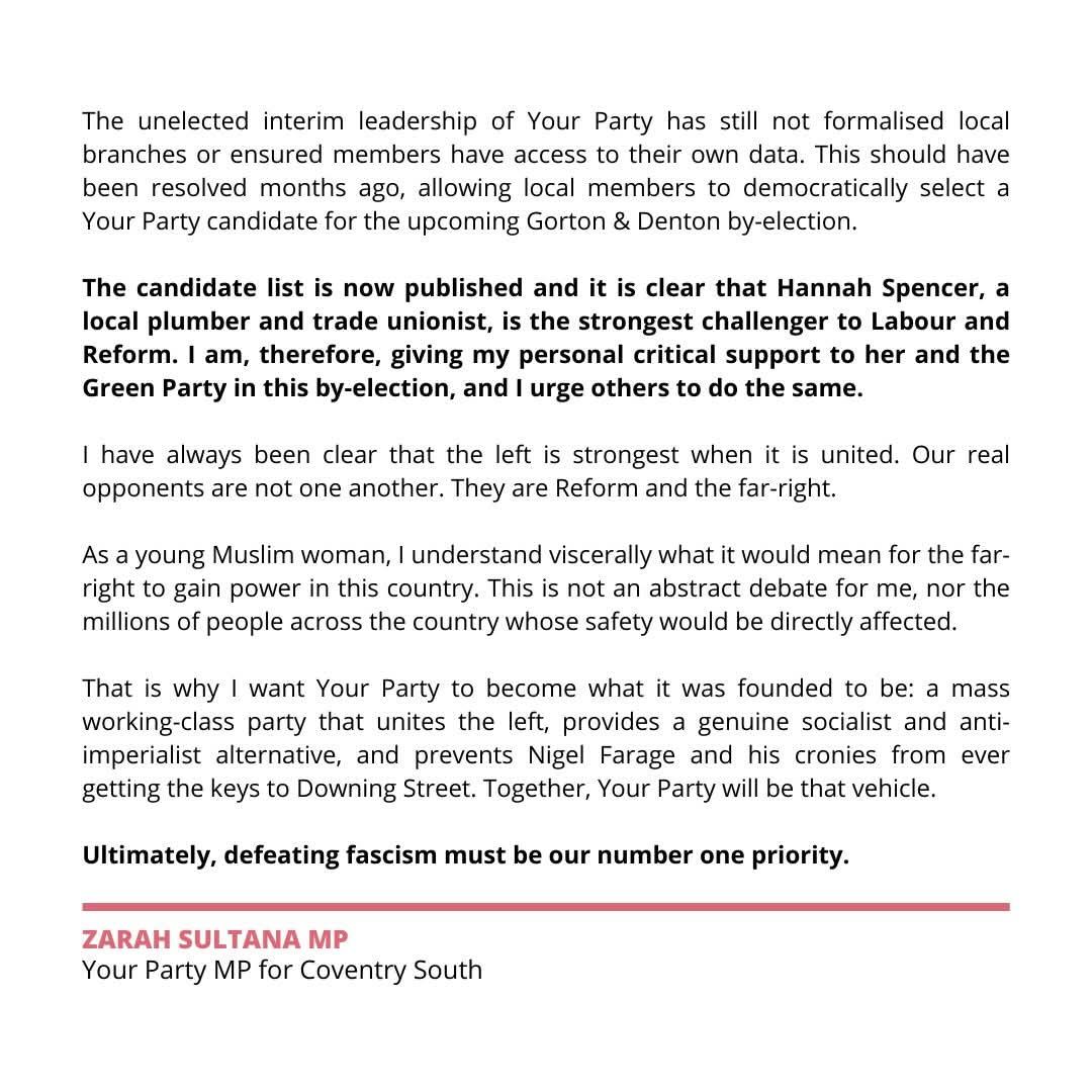 Hannah Spencer will be a brilliant MP for the people of Gorton and Denton. I’m a Mancunian and know when someone genuinely wants to roll up their sleeves and work for the community. Hannah is that person.