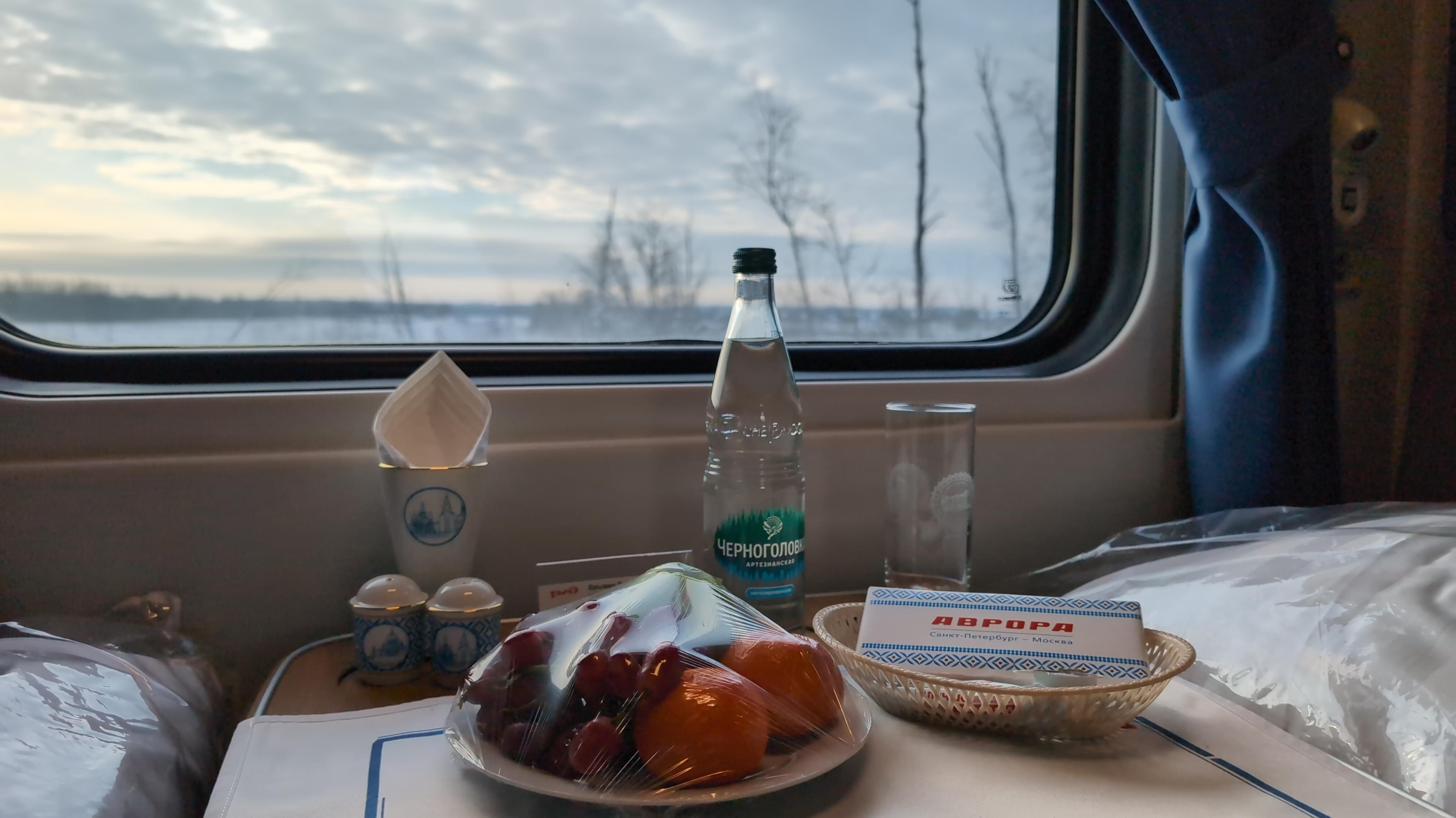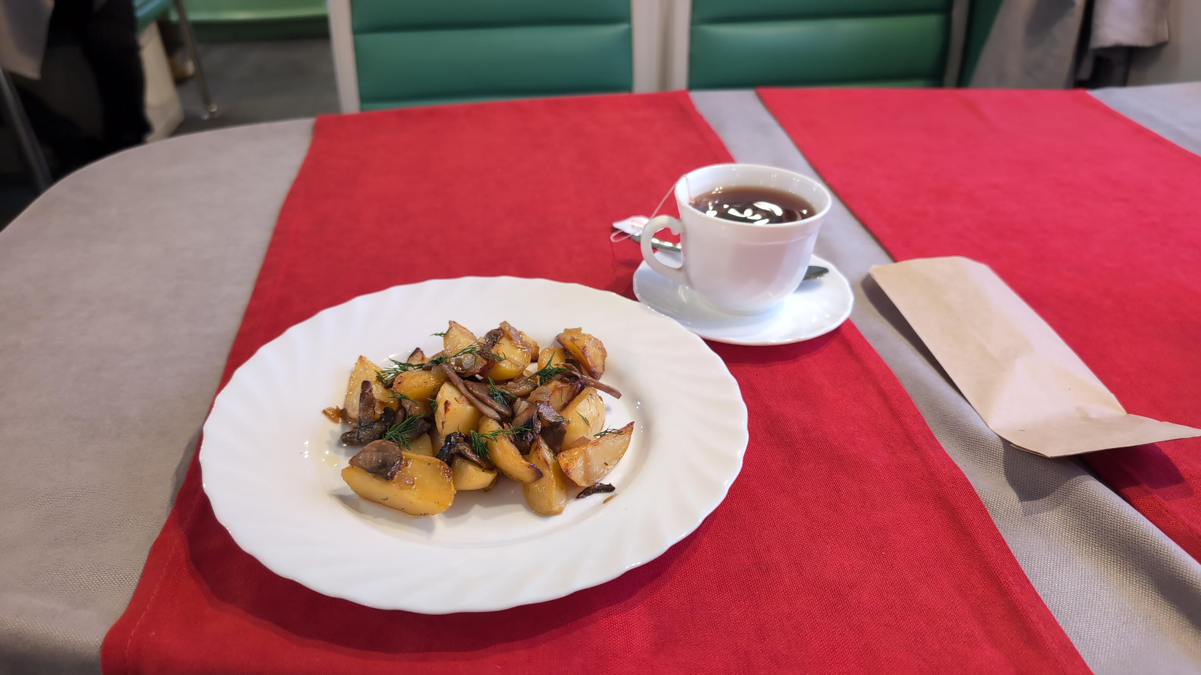 We arrived in Moscow late in the evening. I had an excellent night and slept like a baby until 11 a.m. - after a shower it's now time to grab some late breakfast in the @diningcar : fresh potato wedges with mushrooms and the mandatory black tea.