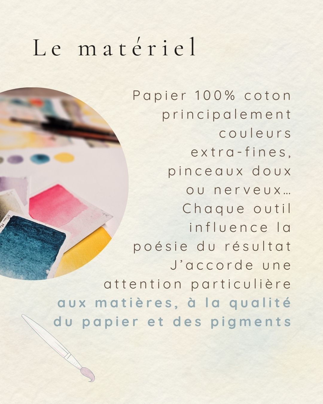 Mon processus de création en aquarelle est un chemin fait d’intuition, de matière et d’écoute.