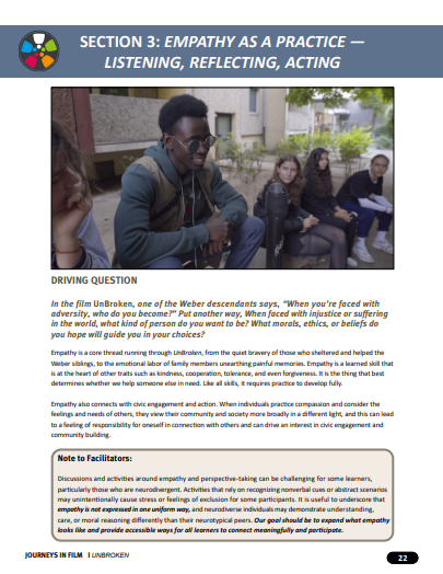 Empathy is a core thread running through award-winning documentary 饾檺饾櫍饾樈饾櫑饾櫎饾櫊饾櫄饾櫍, from the quiet bravery of the Germans who sheltered the Weber children during World War II, to the emotional labor of family members unearthing painful memories. The 饾檺饾櫍饾樈饾櫑饾櫎饾櫊饾櫄饾櫍 Learning Guide provides a classroom-ready lesson to nurture and practice this important skill.