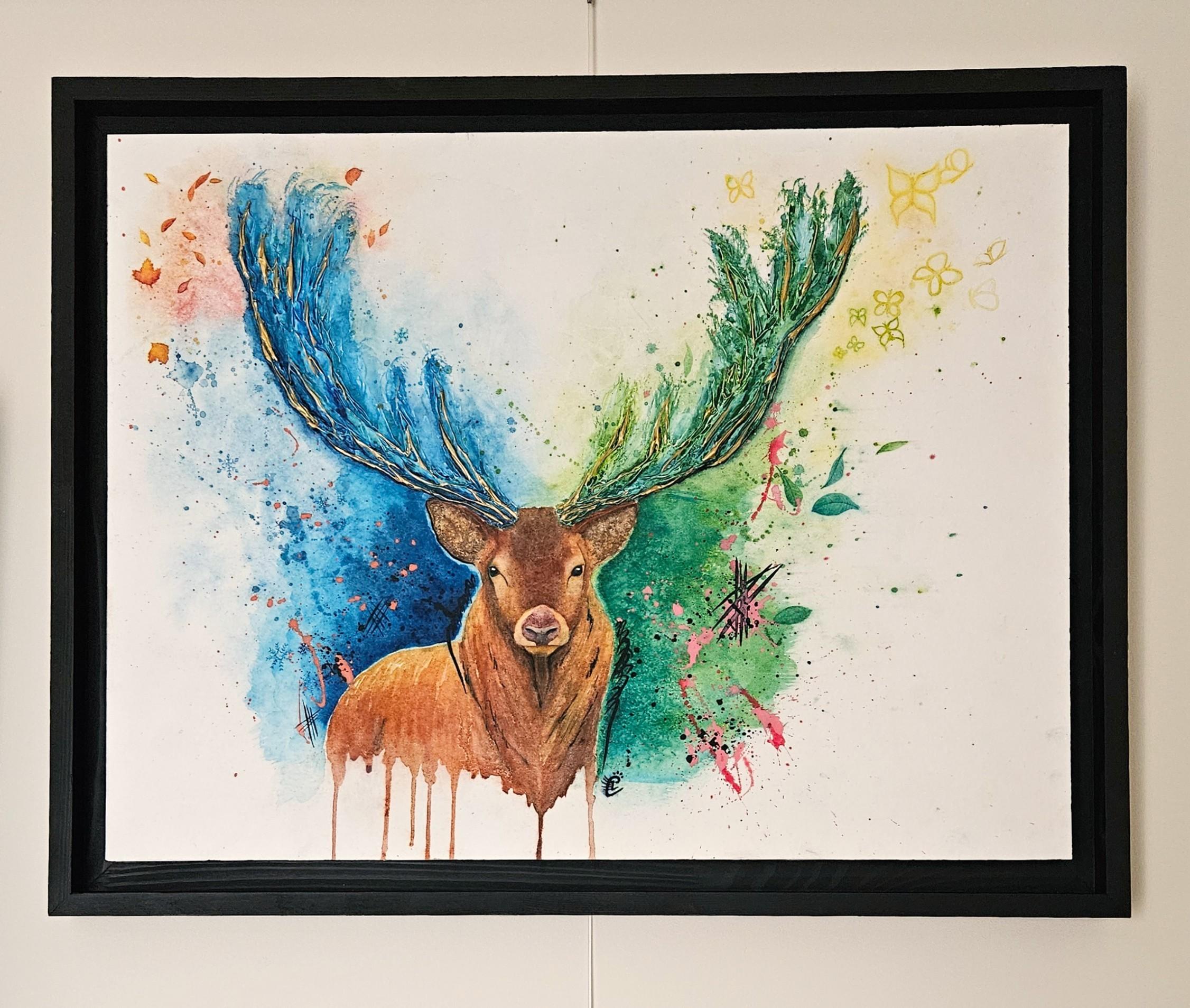 #ArtForSale #Artshop #Fediartshop #FineArtForSale #AquarelleOriginale #ArtEtNature #CadreFaitMain #GardienDuCycle #CerfMagique #ArtContemporain #CaisseAméricaine #ChristelleLachambre #SymbolismeAnimal #NatureInspiration #ÉditionLimitée #SlowMaking