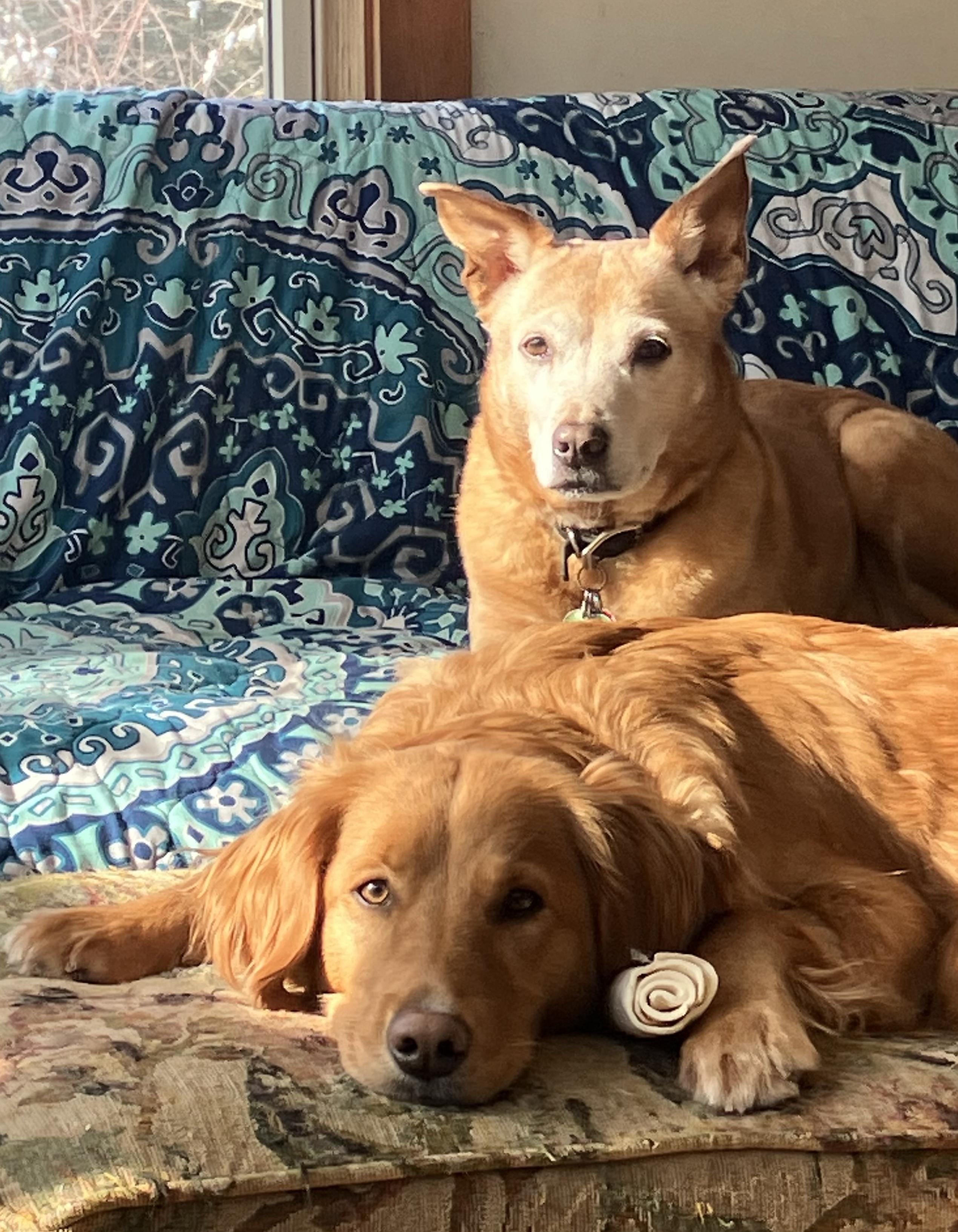 Stella and Suki supervising and making sure everything continues to be copacetic. Stella is making sure nothing fun happens without her active involvement. Suki is just making sure everything is ok.