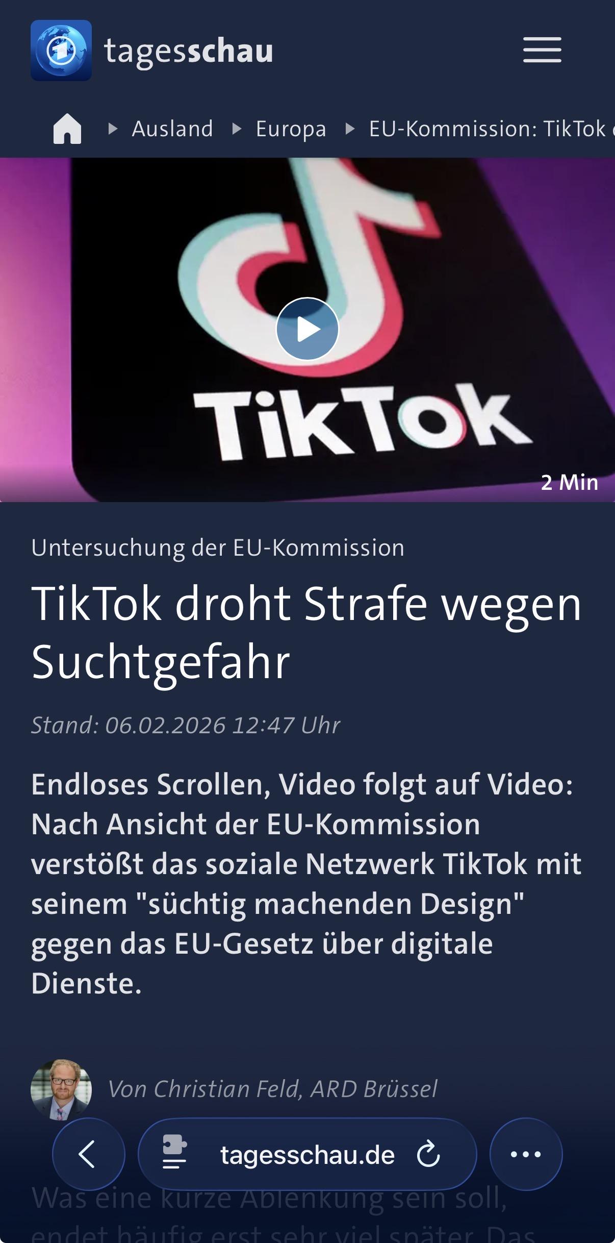 #news ⚡ EU-Kommission sieht Suchtgefahr bei Tiktok: Die Europäische Kommission hat Tiktok vorläufig als gegen den Digital Services Act verstoßend befunden.Wie die Kommission am Freitag m... https://hubu.de/?p=313330 | #eukommission #suchtgefahr #tiktok #hubu