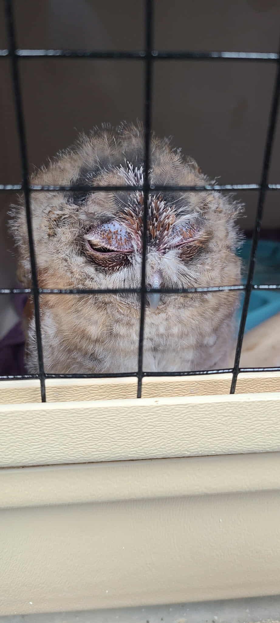 Baby owls, not always cute. Sometimes, they look like death warmed over, right after waking up but before the coffee is ready.