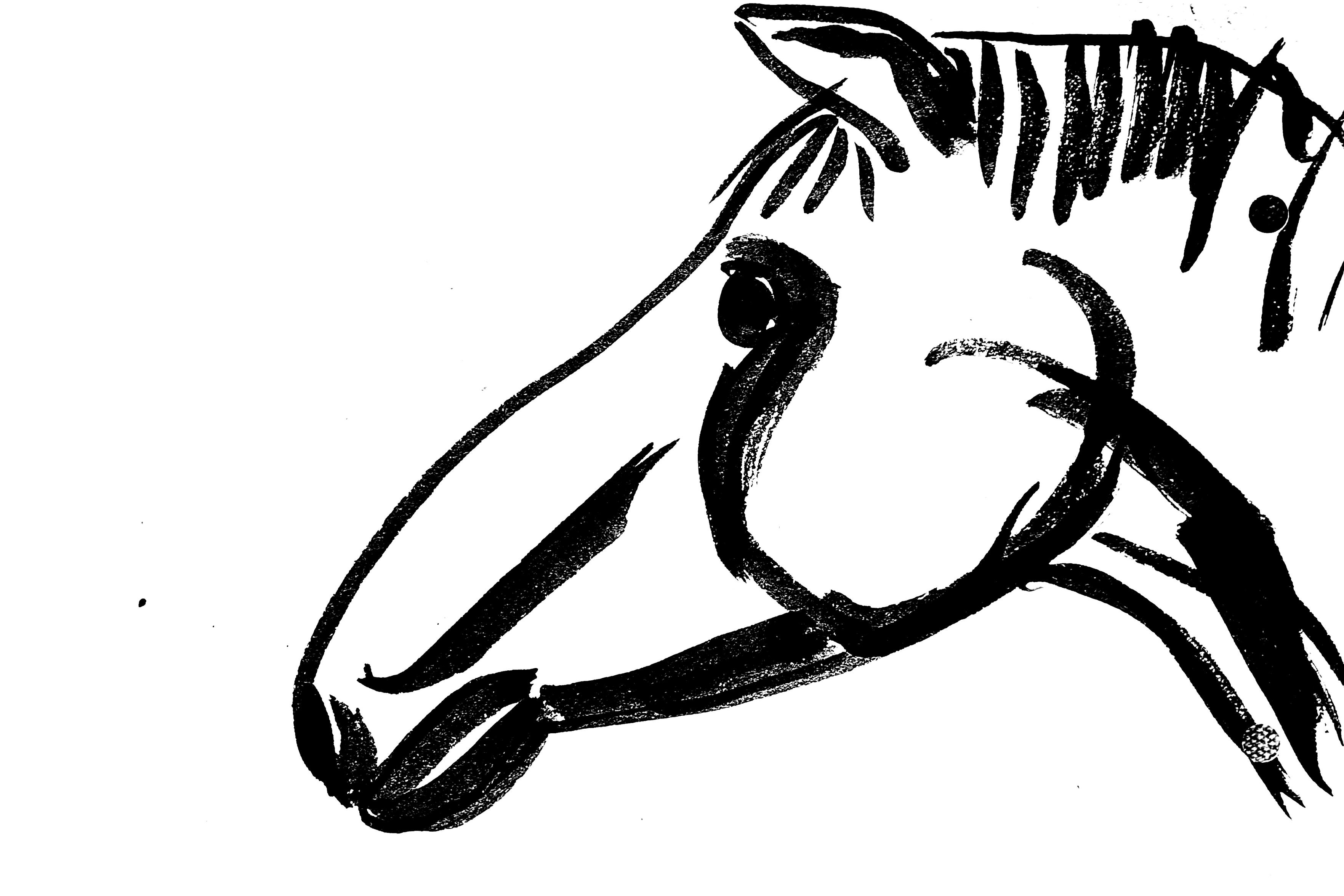 Ink and brush sketch of a horse.