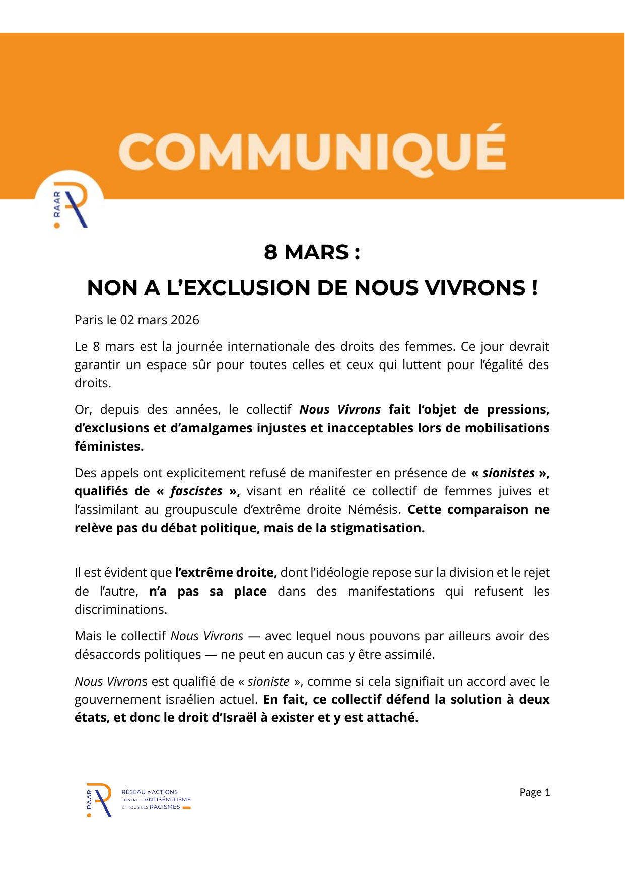 Communiqué du RAAR