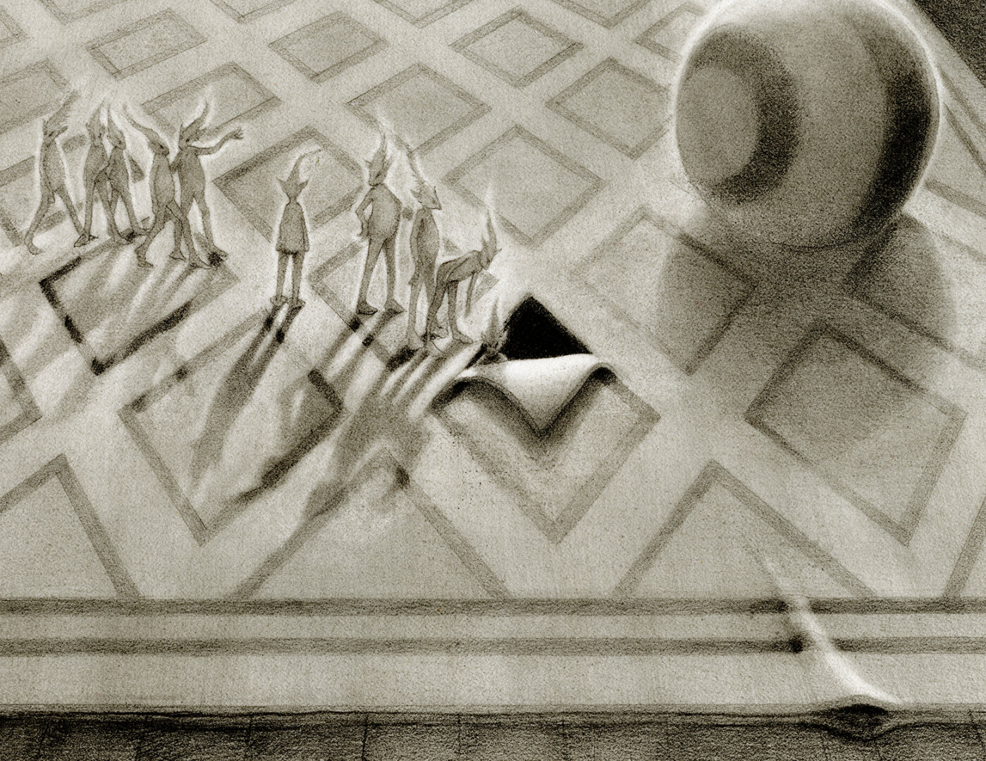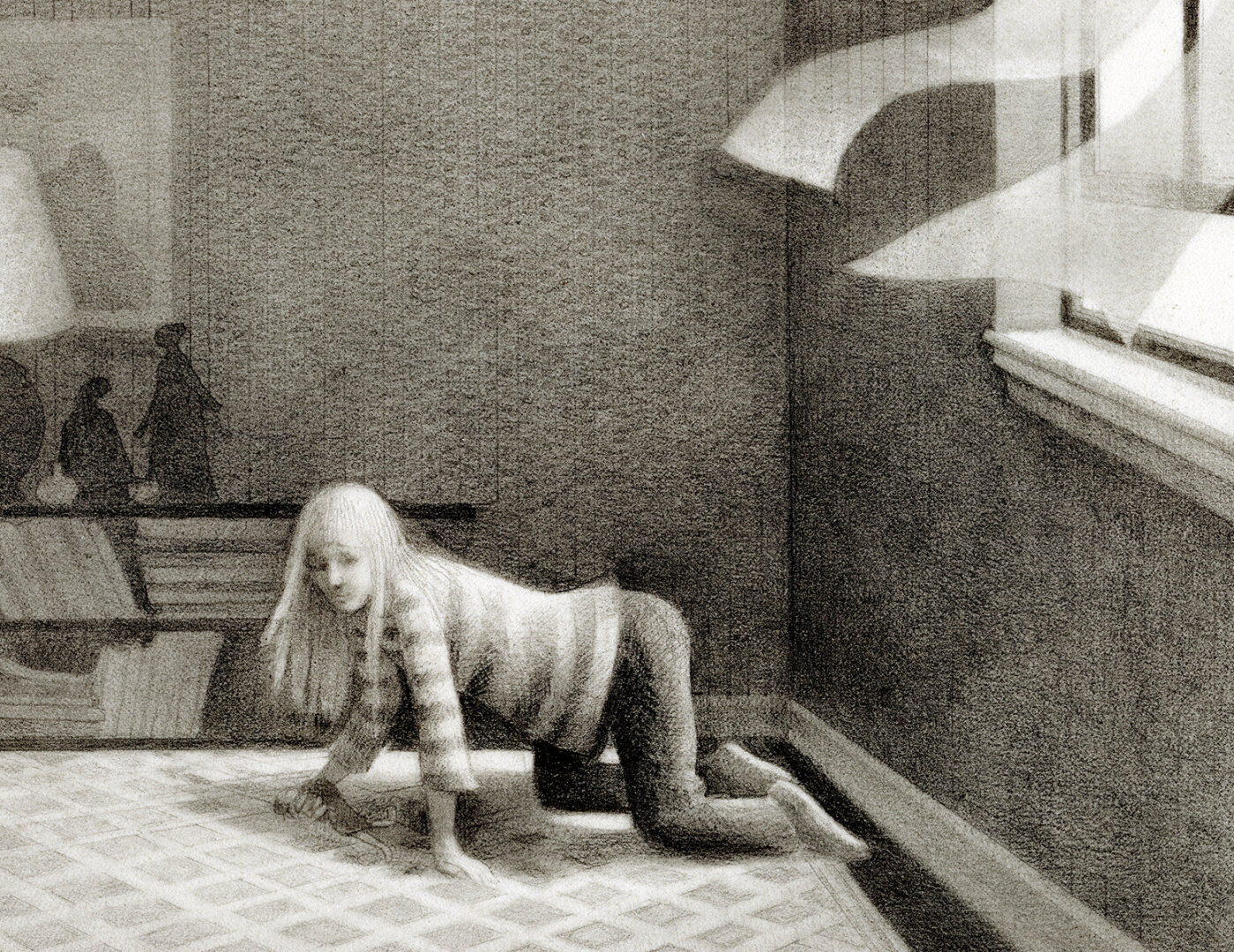 In the hidden corners of the world, sweet mysteries abound. The little girl witnesses a magical moment as tiny creatures march across her playroom floor.