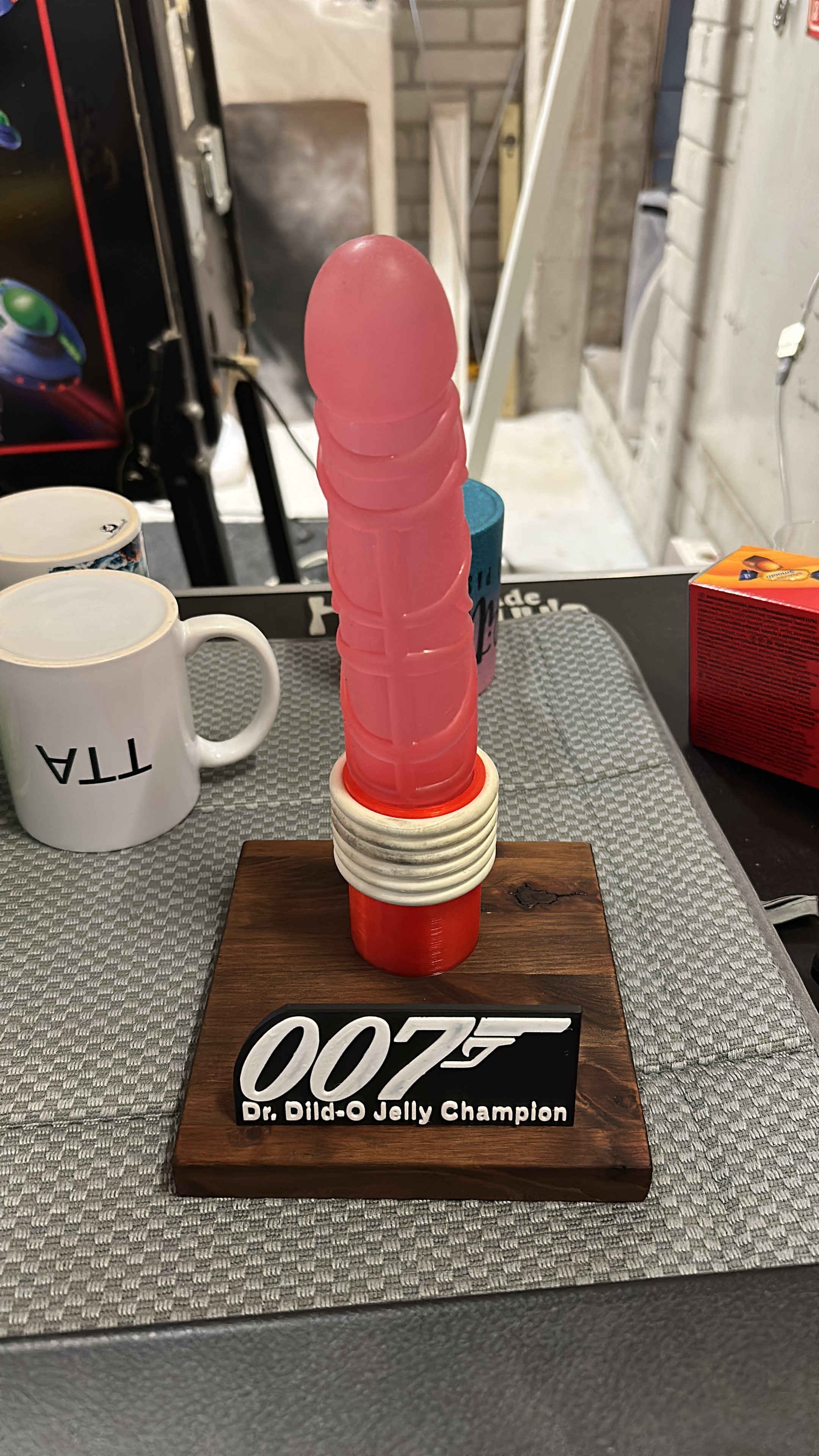 Installing a sex toy into James Bond pinball machine. From the original moving rocket, CAD model for the adapter to make it fit to seeing the finished product. The outcome is a pink jelly dildo getting pinball hits in slow motion.