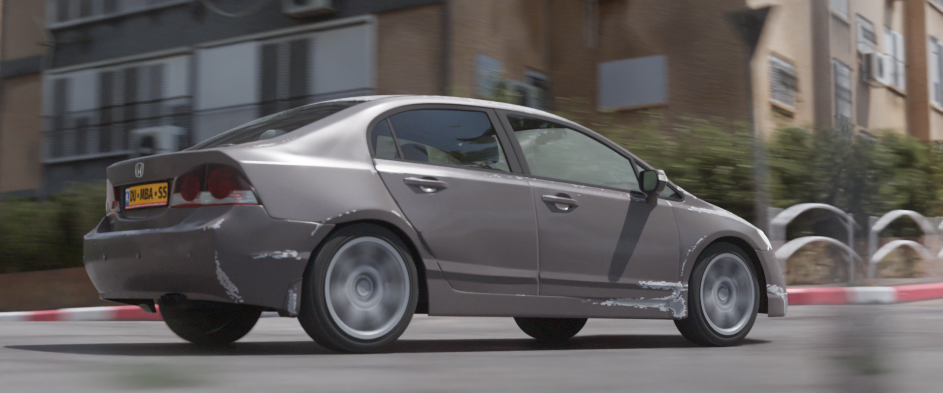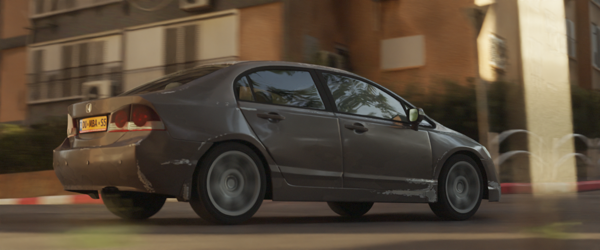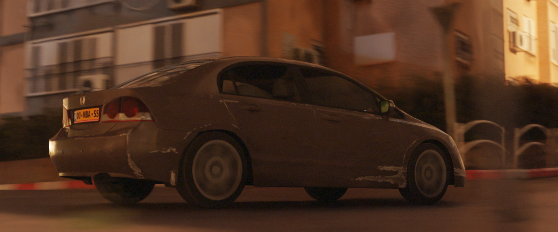 Different camera setup. This time not parented to the car, but stationary, tracking the car.