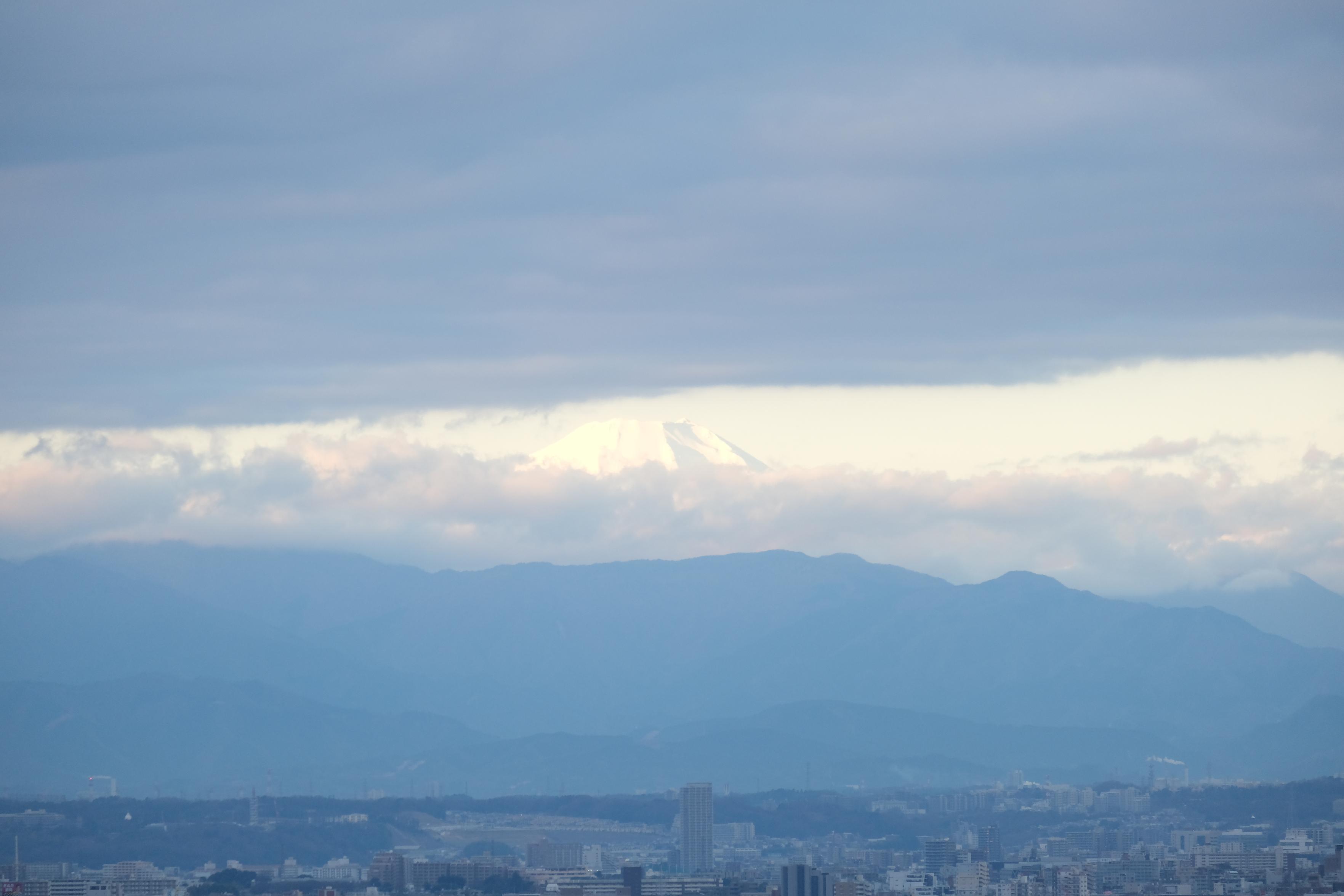 Just the tip of Mt. Fuji visible during sunrise this morning.