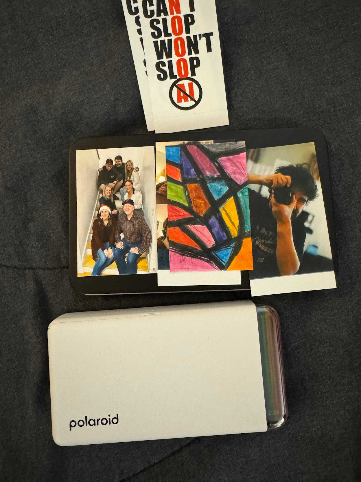 The little Instax Pal is so hard to hold, it's constantly slipping out of my hands and taking unexpected pictures - although I liked this one, I'm imagining I was talking and gesturing. Probably making a strong and eloquent case for us to stop at the Human Bean drive-thru.