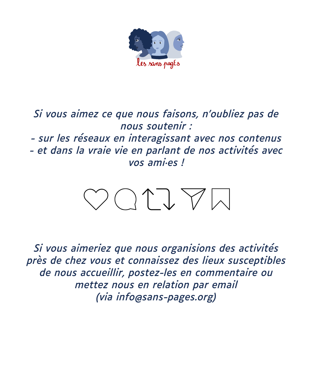 - les sans imagEs, #lsp_femmesdart : dessine des femmes qui sont des créatrices/artistes (écrivaines, peintresses, chanteuses, etc.)