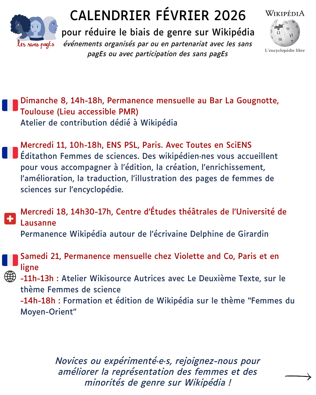 Venez vous familiariser avec l'édition de Wikipédia et le projet les sans pagEs pour réduire les biais de genre sur Wikipédia.