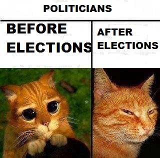 The Devil looks at her, smiles and says, “Yesterday we were campaigning. Today you voted for us!”