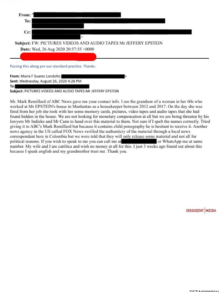 All the way back in 2020, ABC and FOX News received video evidence from Epstein's Manhattan housekeeper, which they verified, and both networks buried it.